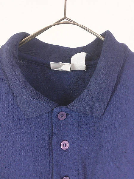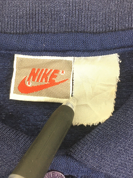 古着 90s NIKE スウォッシュ ワンポイント 刺しゅう 3つボタン 襟付き スウェット トレーナー XL位