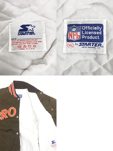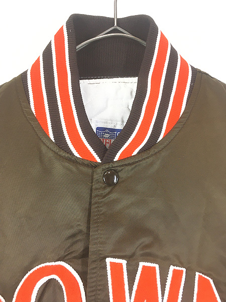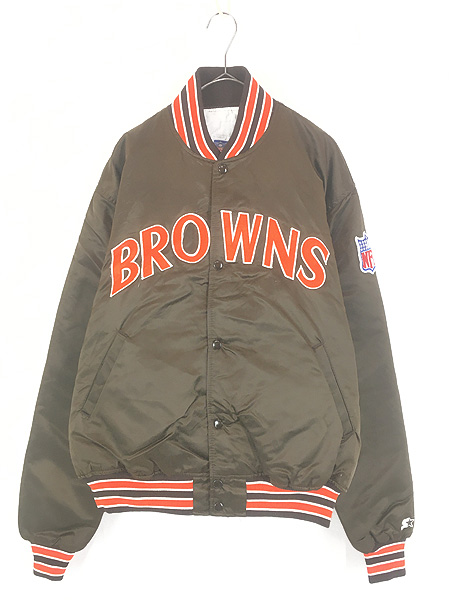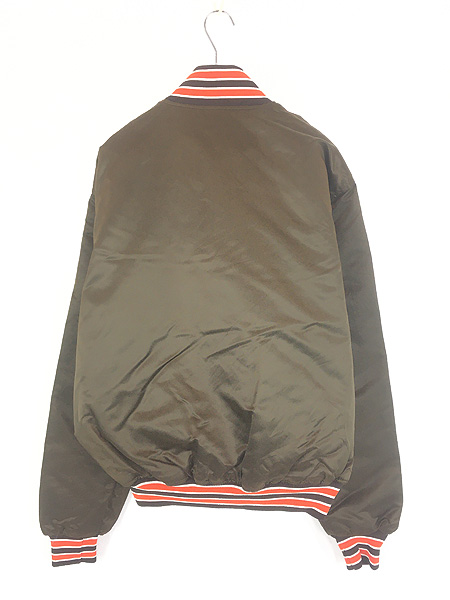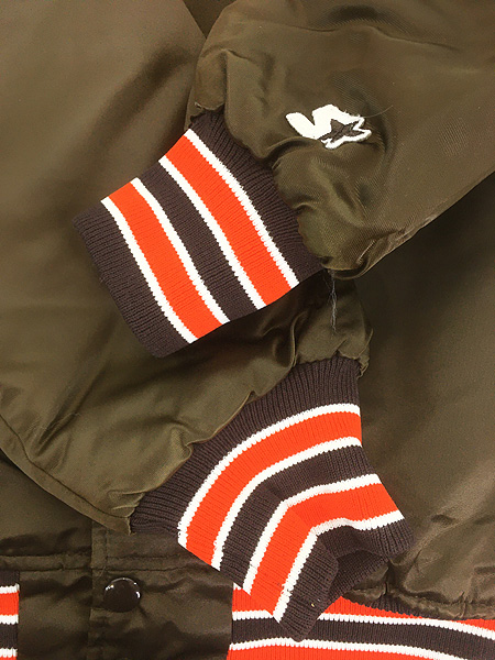 古着 80s USA製 STARTER NFL Cleveland Browns ブラウンズ 光沢 サテン スタジアム ジャケット スタジャン XL