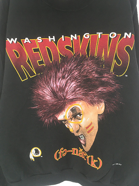 古着 90s USA製 NFL Washington Redskins レッドスキンズ フェイス グラフィック スウェット トレーナー L