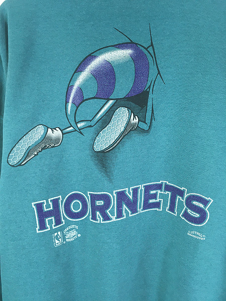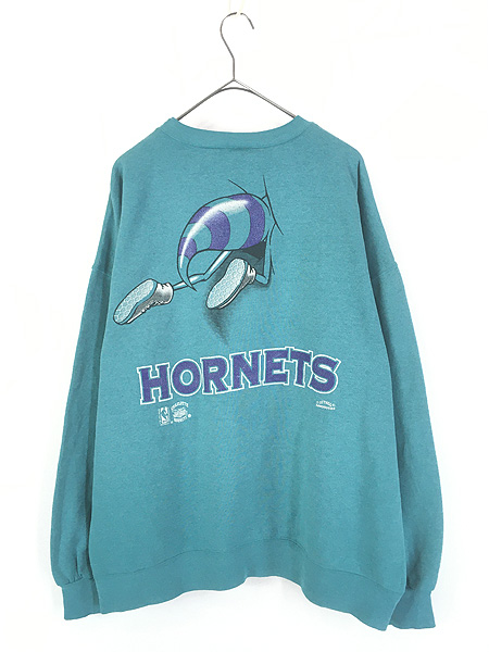 古着 90s USA製 NBA Charlotte Hornets ホーネッツ 両面 だまし絵 プリント スウェット トレーナー XL