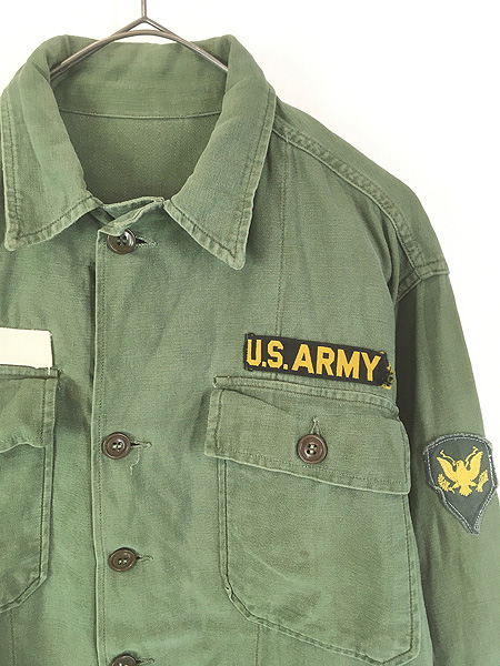 古着 60s 米軍 US ARMY 「1st 前期」 100% コットン サテン ミリタリー ユーティリティー ファティーグ シャツ XL位