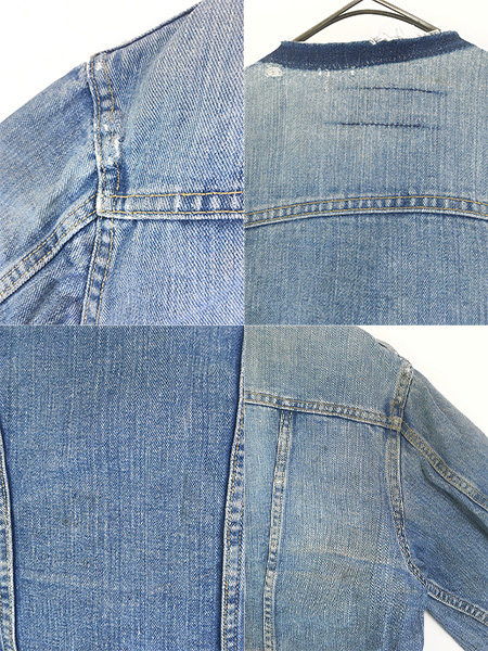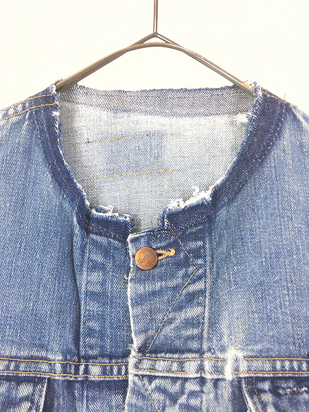 古着 70s Wrangler 124MJ 初期 ミミ付 ノーカラー リメイク デニム トラッカー ジャケット Gジャン 44位