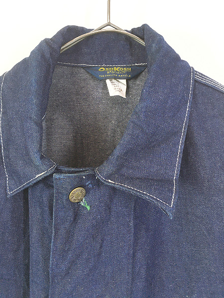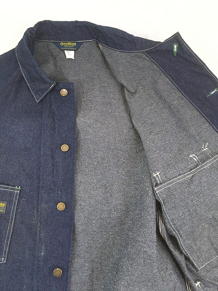 古着 80s USA製 OshKosh B'gosh 真紺 100%コットン デニム ワーク カバーオール ジャケット 44R ミント!!