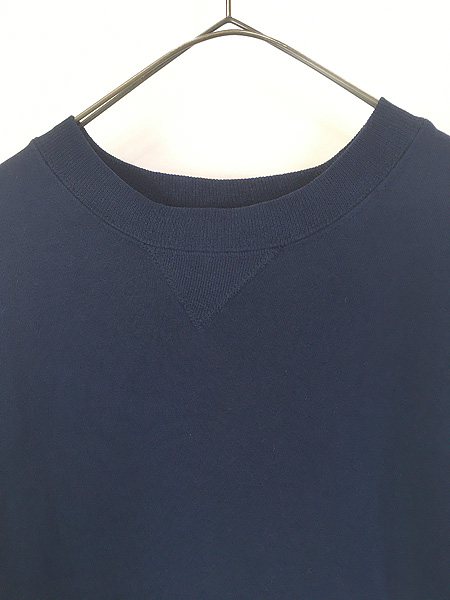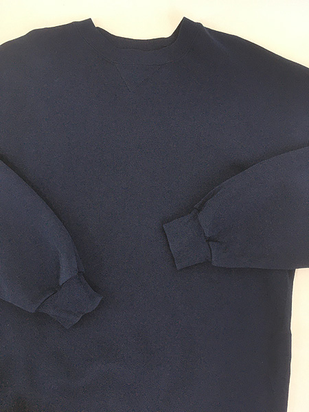 古着 90s USA製 Russell 無地 プレーン 前V セットイン スウェット トレーナー ネイビー XL