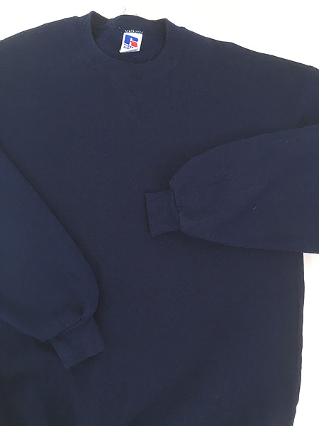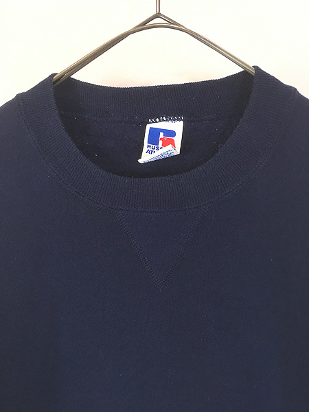 古着 90s USA製 Russell 無地 プレーン 前V セットイン スウェット トレーナー ネイビー XL ミント!!