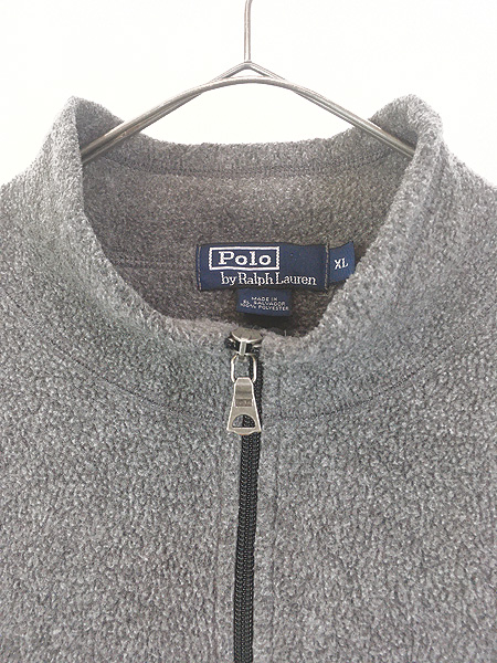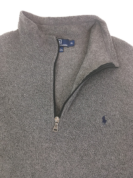 古着 90s Polo Ralph Lauren ワンポイント ハーフジップ フリース ジャケット グレー XL