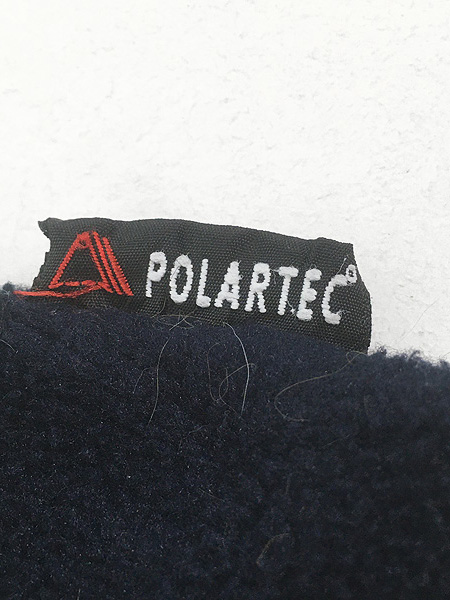 遮風性能を持つPOLARTEC(ポーラテック)フリース、襟裏ベージュのナイロン地、胸元ポニー刺しゅう、首元チンストラップ付き。生地自体はフッカフカのグッドコンディションの1点です。