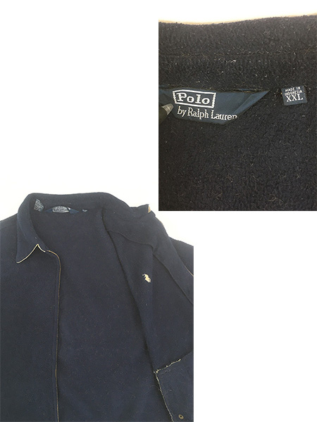 古着 90s Polo Ralph Lauren ワンポイント ソリッド フリース スウィング トップ ジャケット 紺 XXL