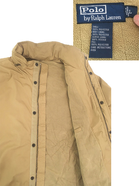 古着 90s Polo Ralph Lauren フリース ライナー 2way ポリエステル シェル ジャケット カーキ L
