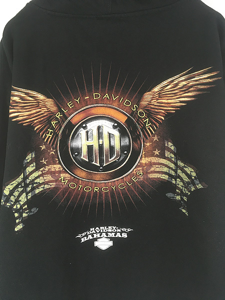 古着 00s- HARLEY DAVIDSON 星条旗 ウィング BIG ロゴ スウェット ジップ パーカー L