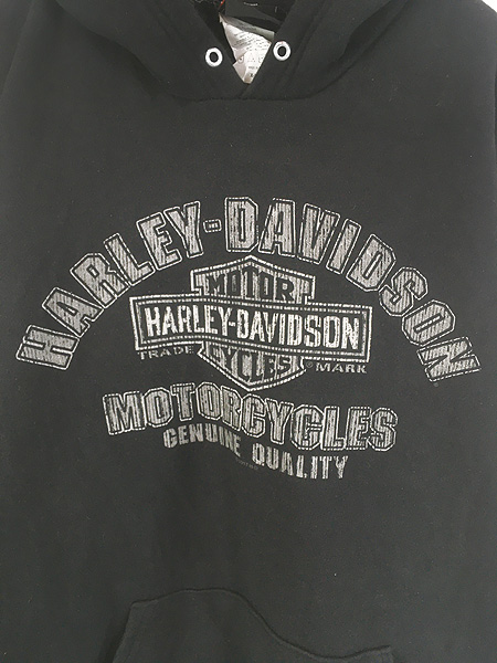 古着 10s HARLEY DAVIDSON バー&シールド 4段 プリント スウェット パーカー XL