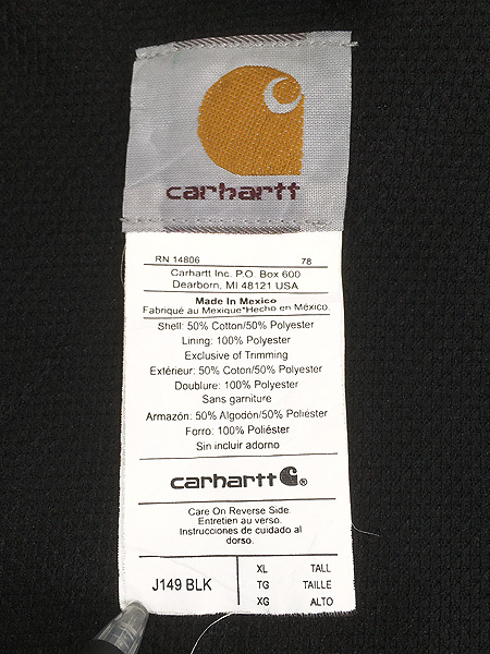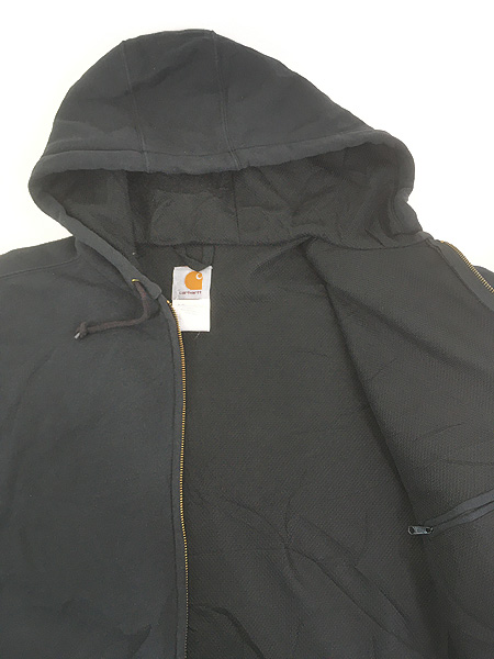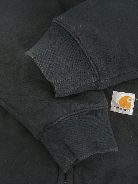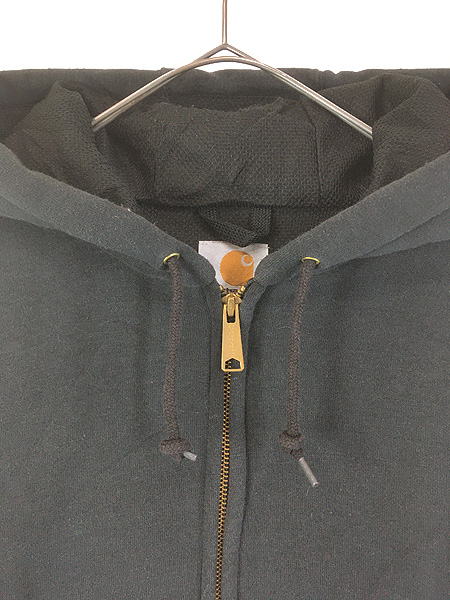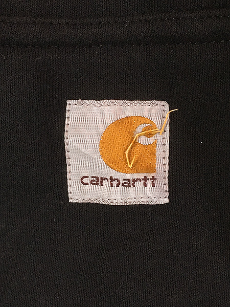 古着 10s Carhartt 裏地 メッシュ ワンポイント パッチ スウェット ジップ パーカー ブラック XL Tall