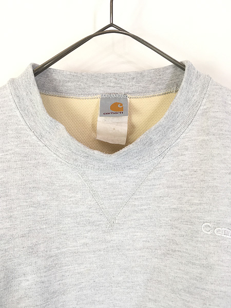 古着 90s- Carhartt 裏地 メッシュ 前V ワンポイント 刺しゅう スウェット トレーナー グレー XL位