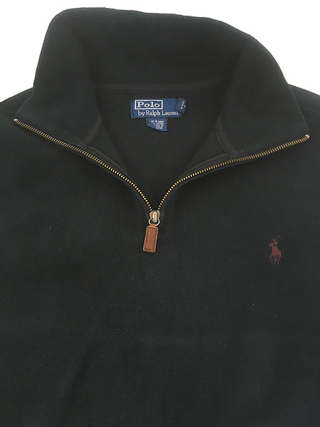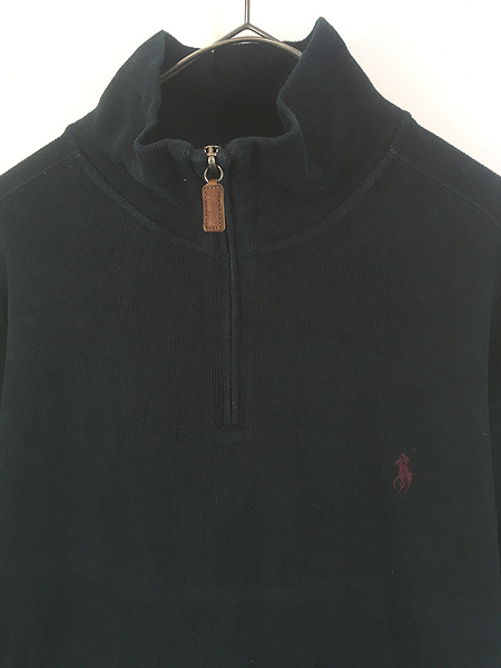 古着 Polo Ralph Lauren ワンポイント ハーフジップ 裾リブなし ハイゲージ コットン ニット セーター ブラック XL