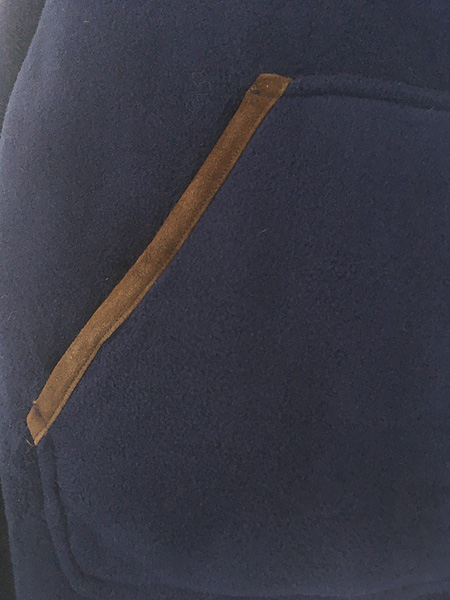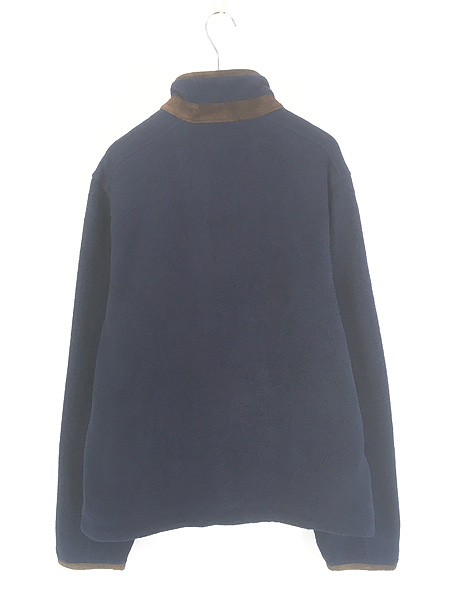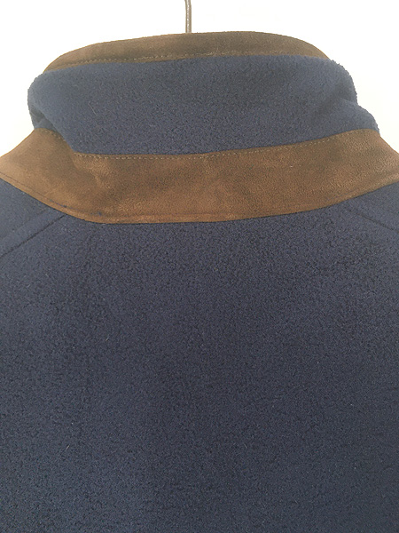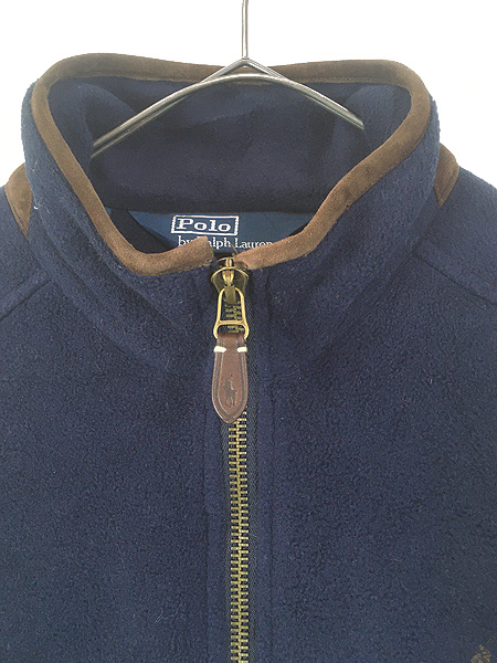 古着 90s Polo Ralph Lauren 本革 レザー パイピング セパポケ フリース ジップ カーディガン ネイビー M