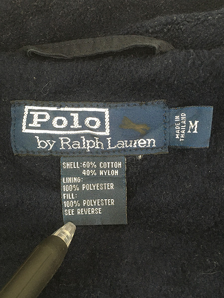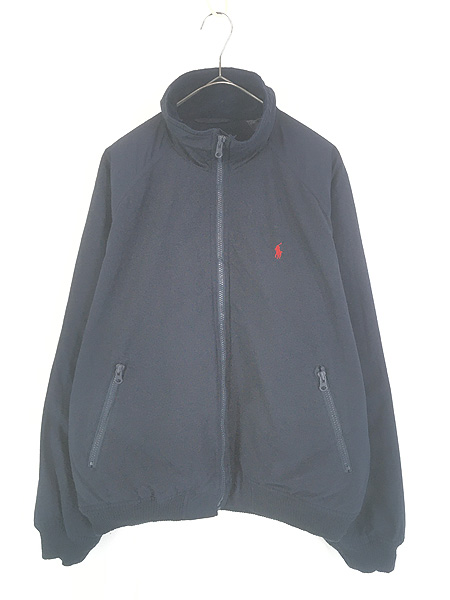 古着 Polo Ralph Lauren 裏地 フリース ワンポイント ソリッド コットン ナイロン シェルド ジャケット ダークネイビー M