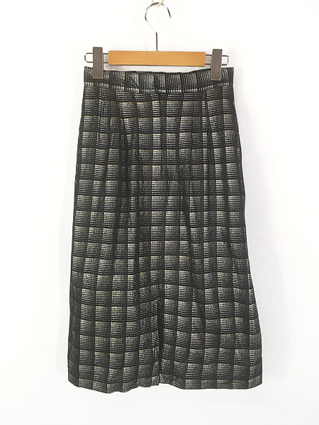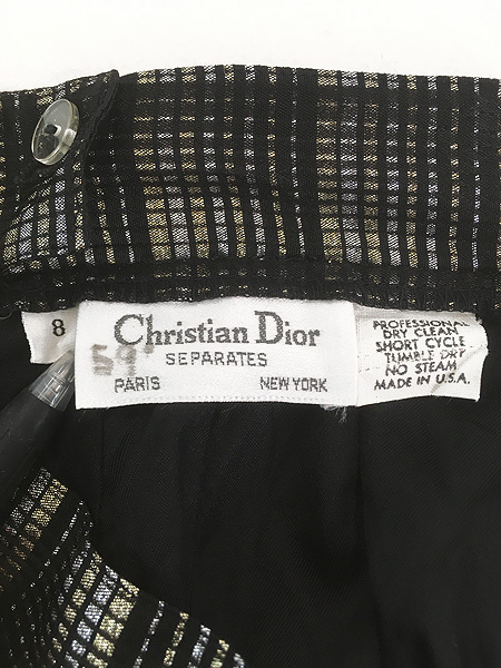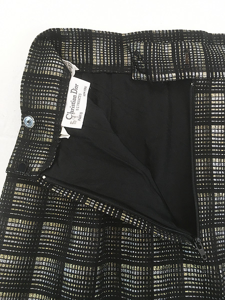 レディース 古着 80s USA製 Christian Dior ゴールド シルバー チェック柄 セミフレア スカート ミディアム丈 S位