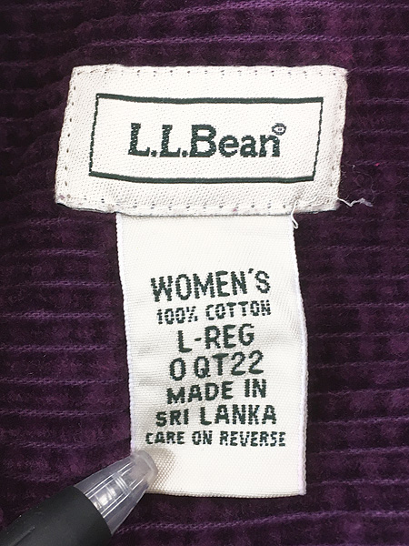 レディース 古着 LL Bean 無地 ソリッド 太畝 コーデュロイ シャツ 紫 L