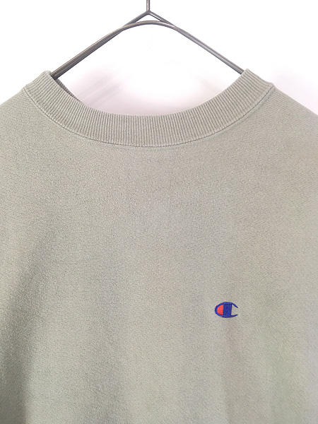 古着 90s USA製 Champion Reverse Weave ワンポイント リバース スウェット トレーナー カーキベージュ L