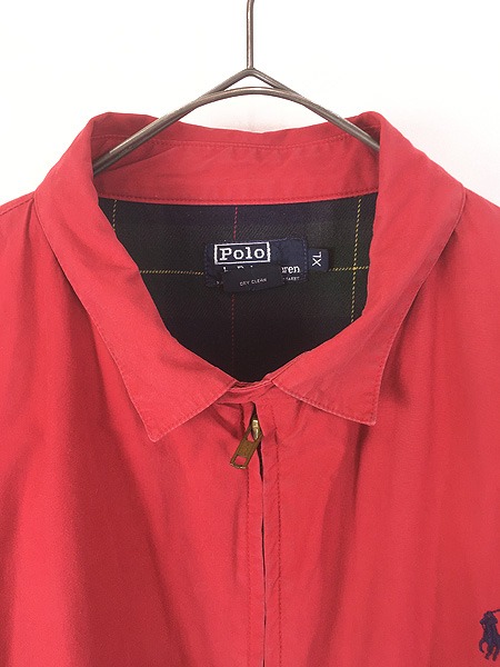 古着 90s USA製 Polo Ralph Lauren 裏地 チェック ワンポイント コットン ツイル スウィング トップ ジャケット レッド XL