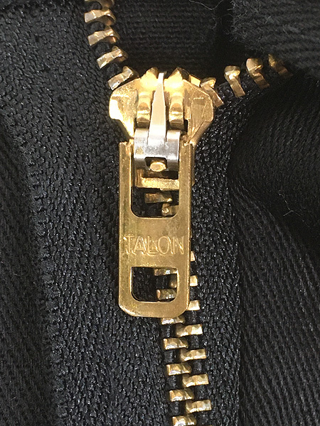ハリのあるコットンポリ素材・TALONジップ・年代特有の調整用ウエストの縫い合わせ・股下ガゼットクロッチ・ストレートシルエット。