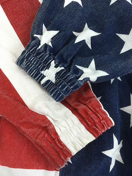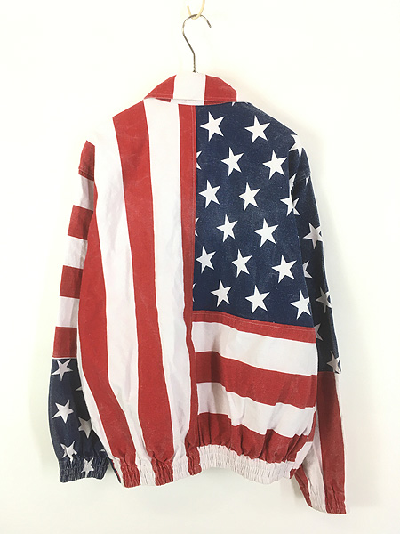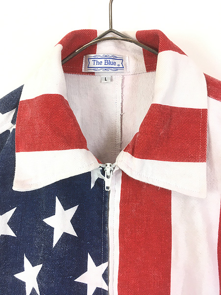 古着 90s The Blue アメリカ 星条旗 フラッグ 総柄 デニム ジャケット ブルゾン L