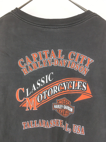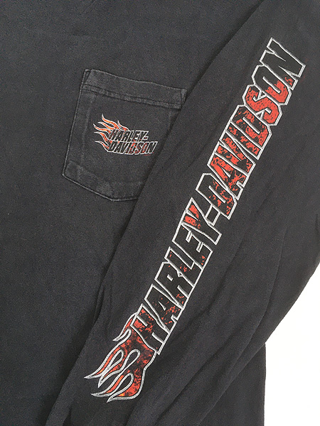 古着 00s USA製 HARLEY DAVIDSON ファイヤー ロゴ 長袖 ポケット Tシャツ ロンT ポケT XXL