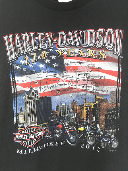 古着 10s HARLEY DAVIDSON 110th アニバーサリー バイク グラフィック 長袖 Tシャツ ロンT XL