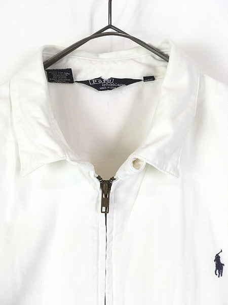 古着 90s USA製 Polo Ralph Lauren ワンポイント コットン ツイル スウィングトップ ジャケット ホワイト L