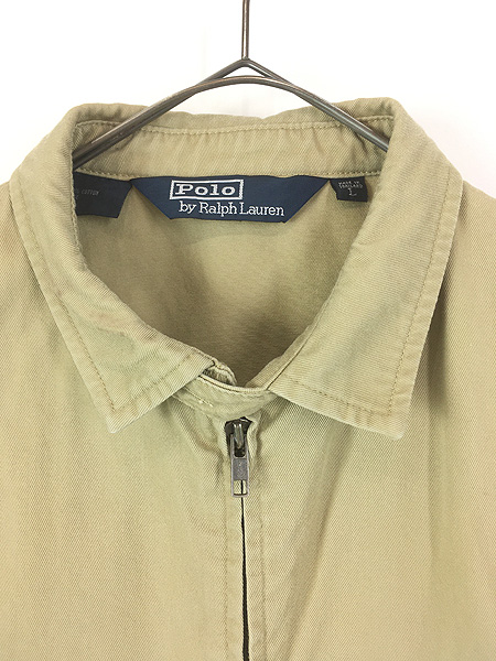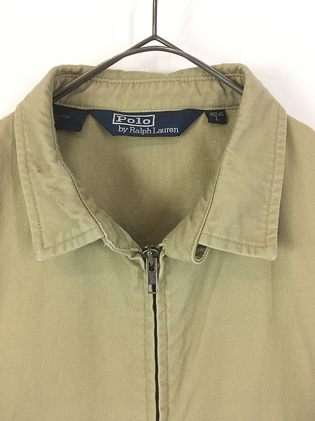 古着 90s Polo Ralph Lauren ワンポイント コットン ツイル スウィングトップ ジャケット カーキ L