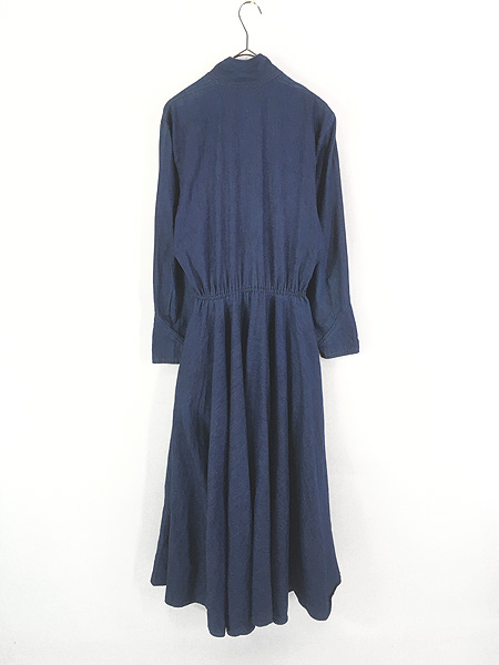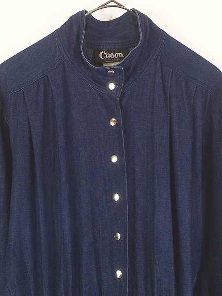 レディース 古着 90s USA製 Choon スタンドカラー 濃紺 ダンガリー デニム ワンピース ロング丈 12