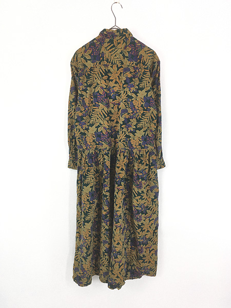 レディース 古着 90s Eddie Bauer 木の実 ボタニカル 総柄 コーデュロイ ワンピース マキシ丈 S