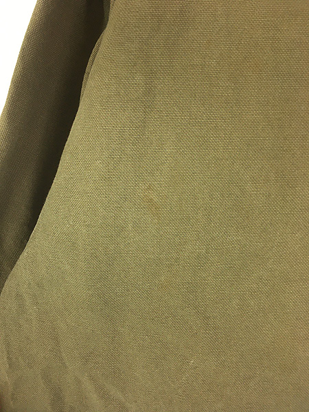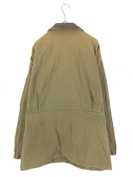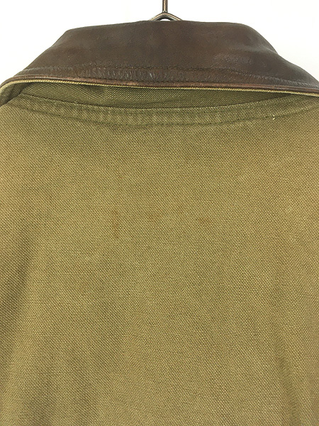 古着 90s USA製 WoolRich 本革 レザー襟 オリーブ ダック ハンティング カバーオール ジャケット L