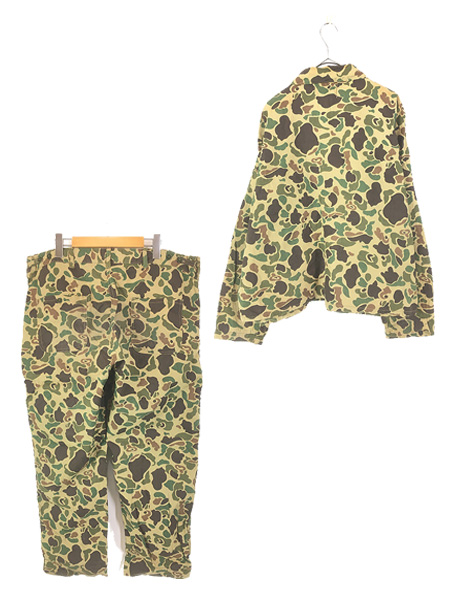 古着 70s Black Sheep ダックハンター カモ 迷彩 カバーオール ハンティング ジャケット & パンツ セットアップ XL