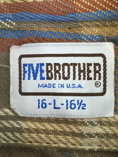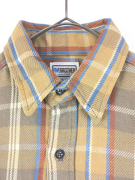 古着 70s USA製 FIVE BROTHER ブラウン チェック ヘビー フランネル コットン シャツ ヘビネル L