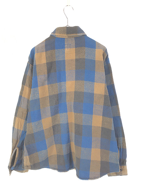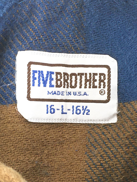 古着 70s USA製 FIVE BROTHER ブルー × ブラック × ブラウン ブロック チェック ヘビー フランネル シャツ ヘビネル L