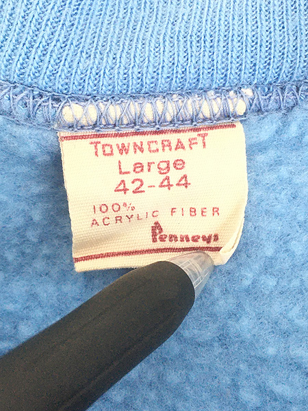 古着 70s Towncraft Penneys 無地 プレーン 100% アクリル セットイン スウェット トレーナー 水色 L