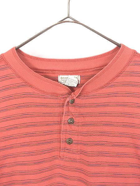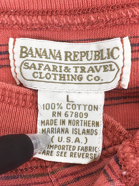 古着 90s BANANA REPUBLIC 「SAFARI&TRAVEL」 ボーダー ヘンリーネック 長袖 Tシャツ ロンT カットソー L