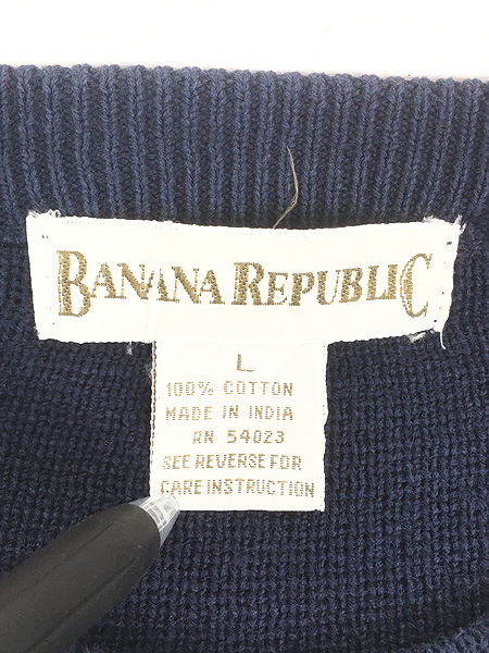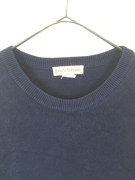 古着 90s BANANA REPUBLIC 無地 ソリッド リブなし シンプル ハイゲージ ニット セーター ネイビー L