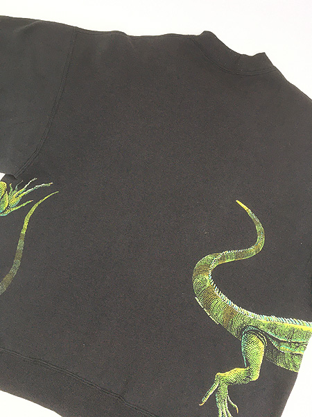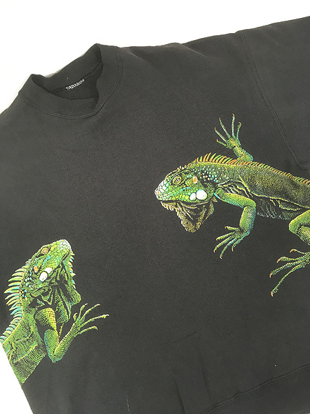 古着 90s HARLEQUIN イグアナ アニマル 巻きプリント スウェット トレーナー XL位