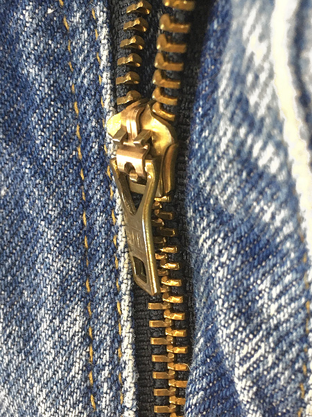 強度のあるコットン地、太いハンマーループ、YKKジップフライ、ストレートシルエット。