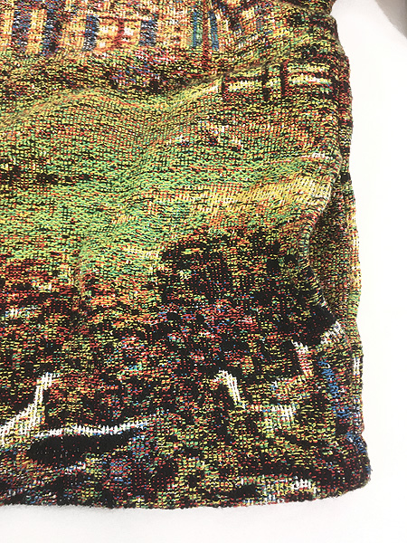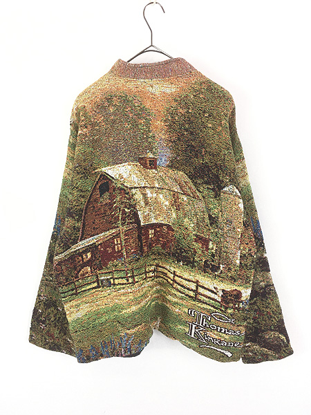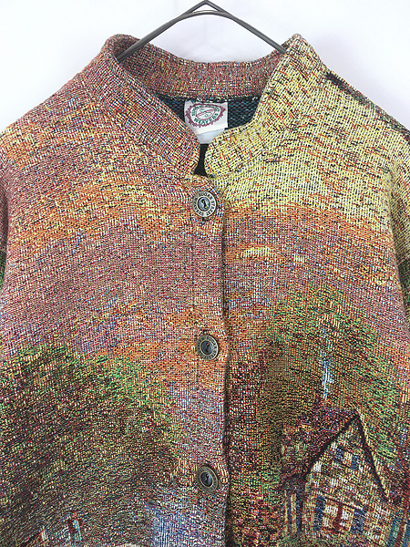 レディース 古着 90s USA製 SUGAR STREET 「Thomas Kinkade」 家 牧場 風景 総柄 コットン ゴブラン ジャケット L