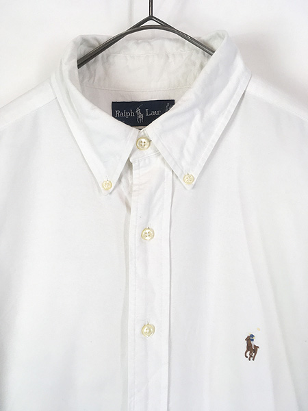 古着 90s Ralph Lauren 「CLASSIC FIT」 ワンポイント ソリッド BD シャツ 白 16 1/2