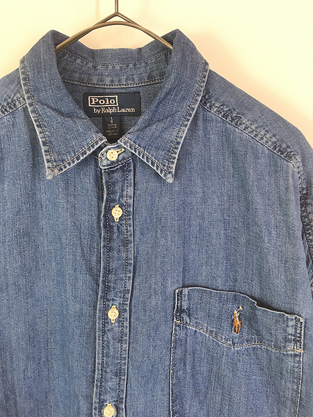古着 90s Polo Ralph Lauren ワンポイント ポケット付 デニム BD シャツ L