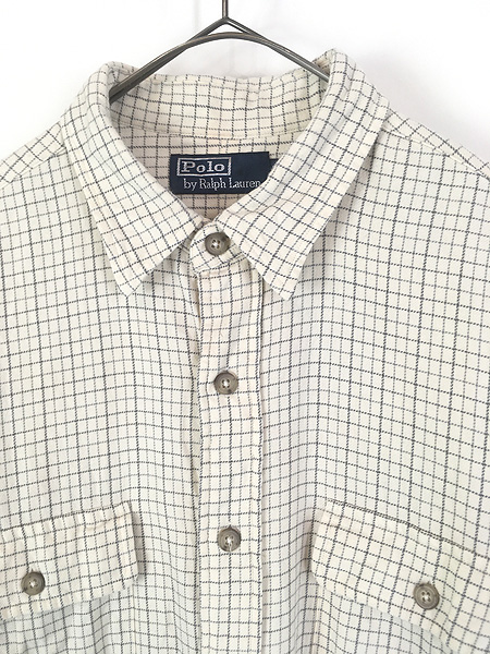 古着 90s Polo Ralph Lauren タッタソール チェック ポケット フランネル シャツ ネルシャツ L