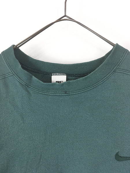 古着 90s NIKE スウォッシュ ワンポイント ソリッド スウェット トレーナー グリーン XL