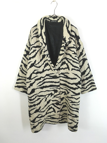 レディース 古着 90s I. B. DIFFUSION ゼブラ アニマル 総柄 ニット チェスター コート S