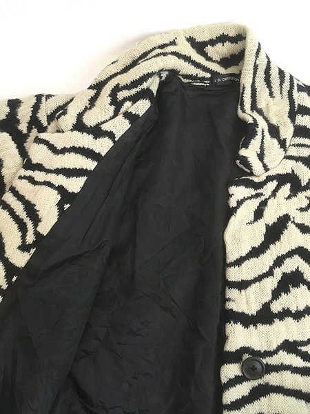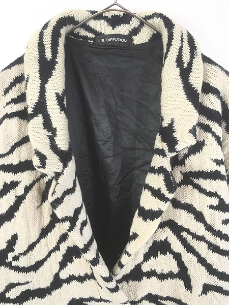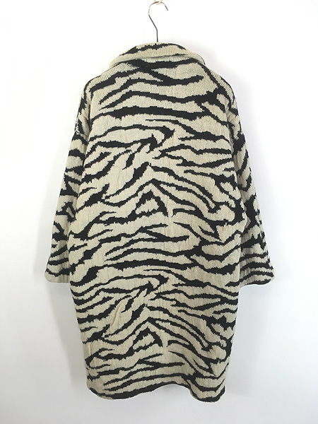 レディース 古着 90s I. B. DIFFUSION ゼブラ アニマル 総柄 ニット チェスター コート S